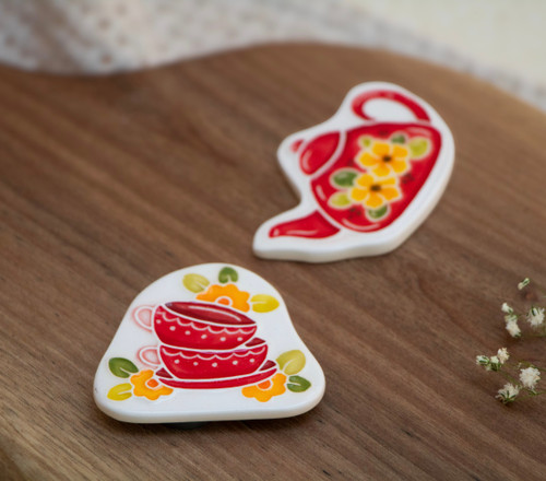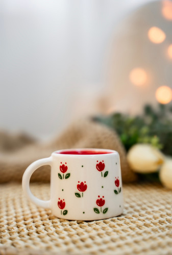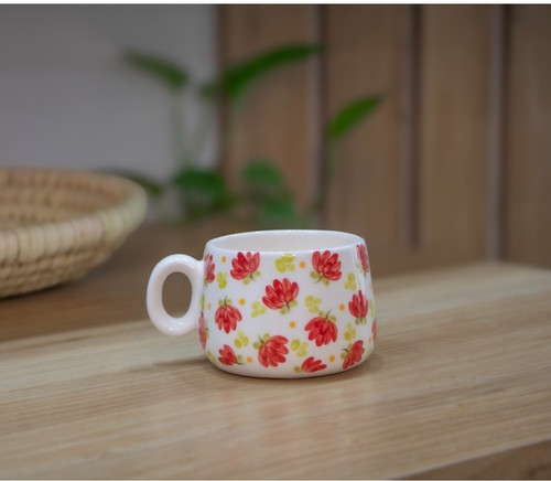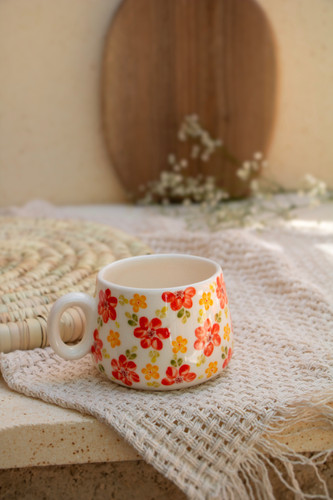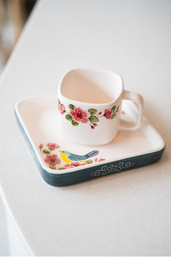 فنجان و نعلبکی سرامیکی دست ساز طرح گل بهار